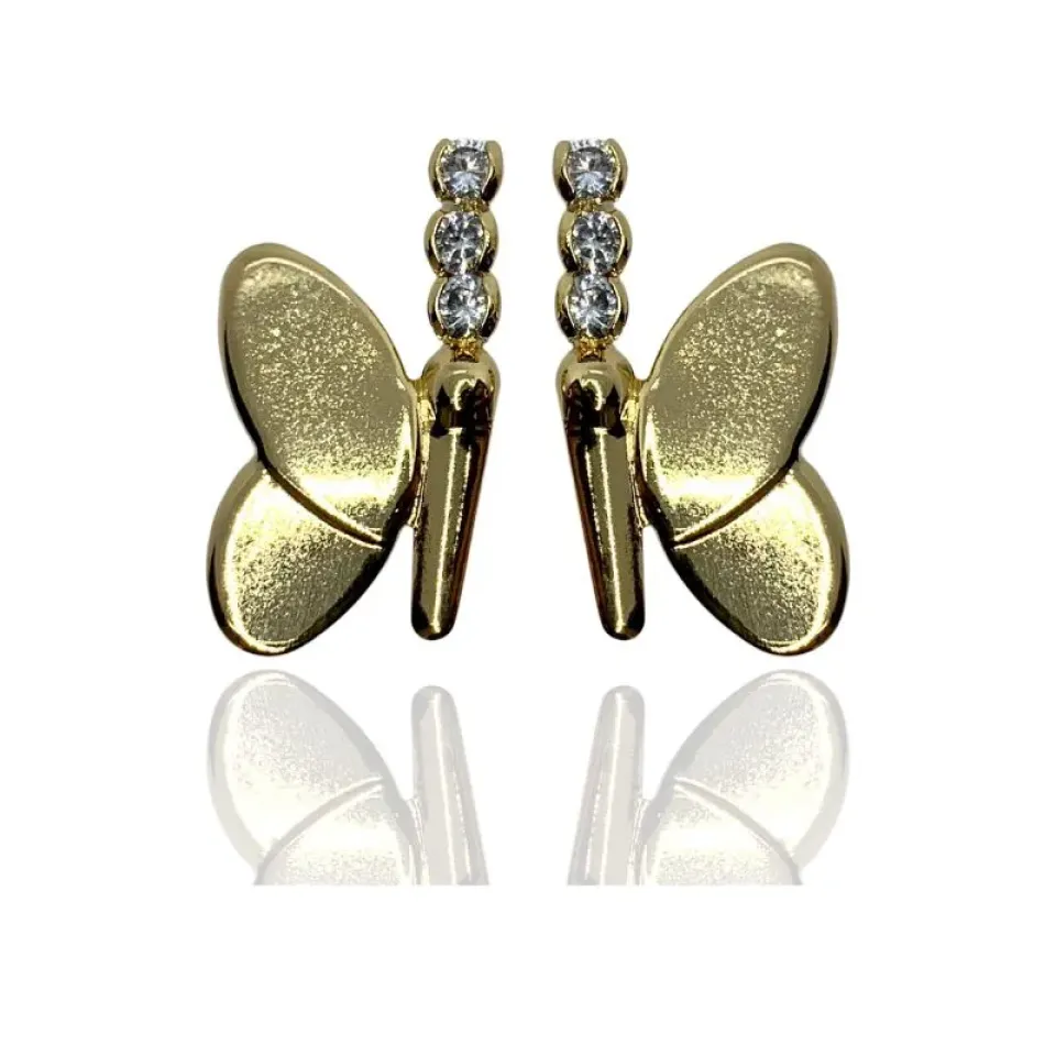 Brinco borboleta com 3 zircônias cristais