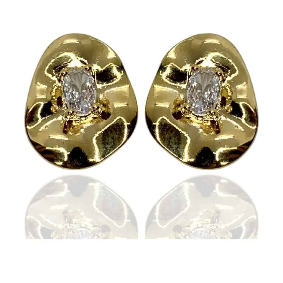 Brinco chapa lisa zircônia oval no meio