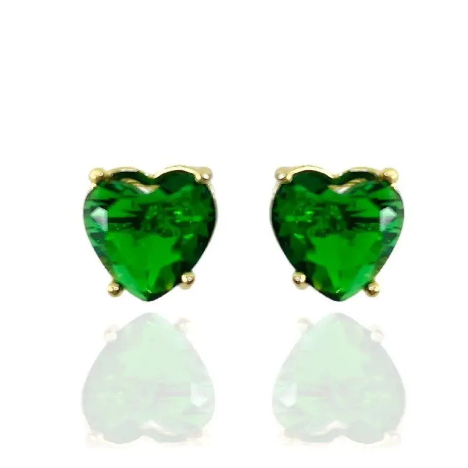 BRINCO CORAÇÃO PEDRA ESMERALDA