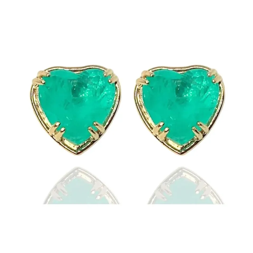 Brinco coração com aro pedra turmalina colombiana