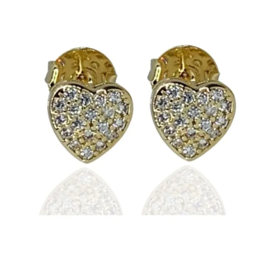 Brinco coração com cravação zircônias cristais