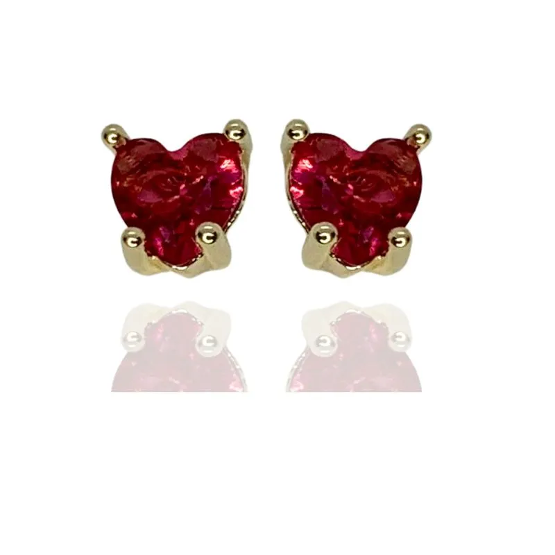 Brinco coração mini zircônia rubi