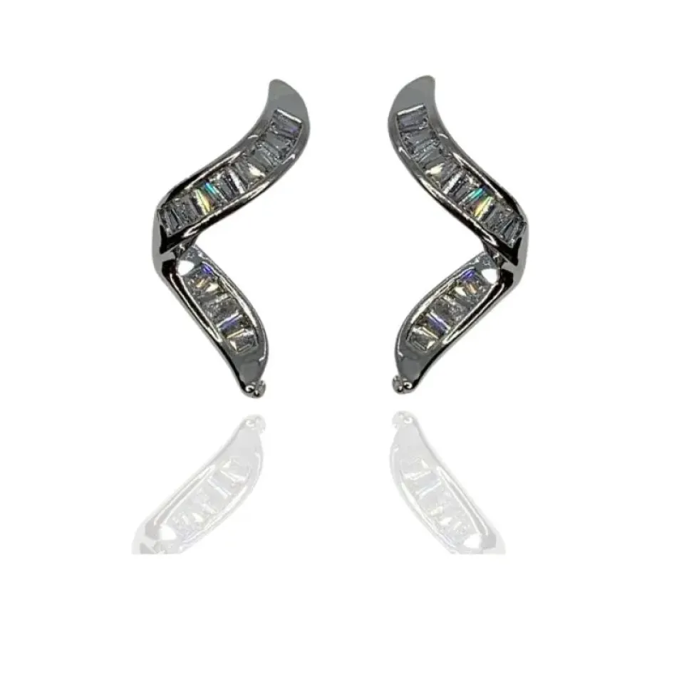 Brinco curvas com baguetes em zircônias cristais