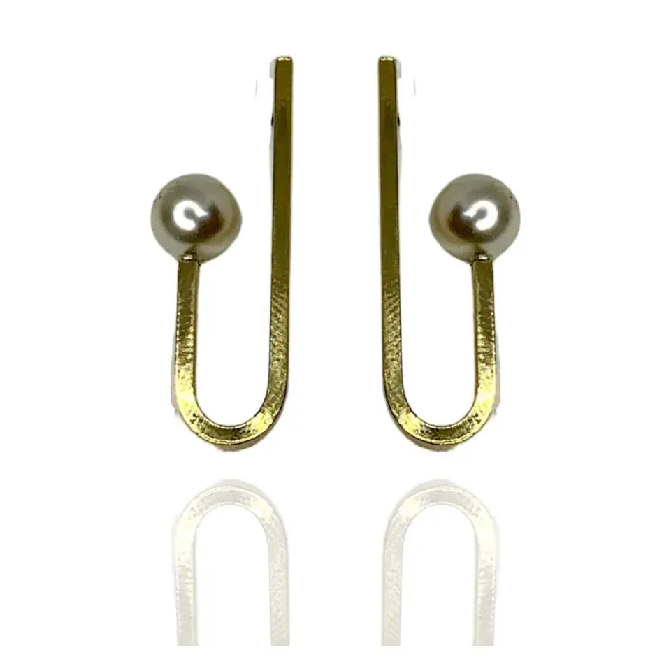 Brinco curvado com pérola