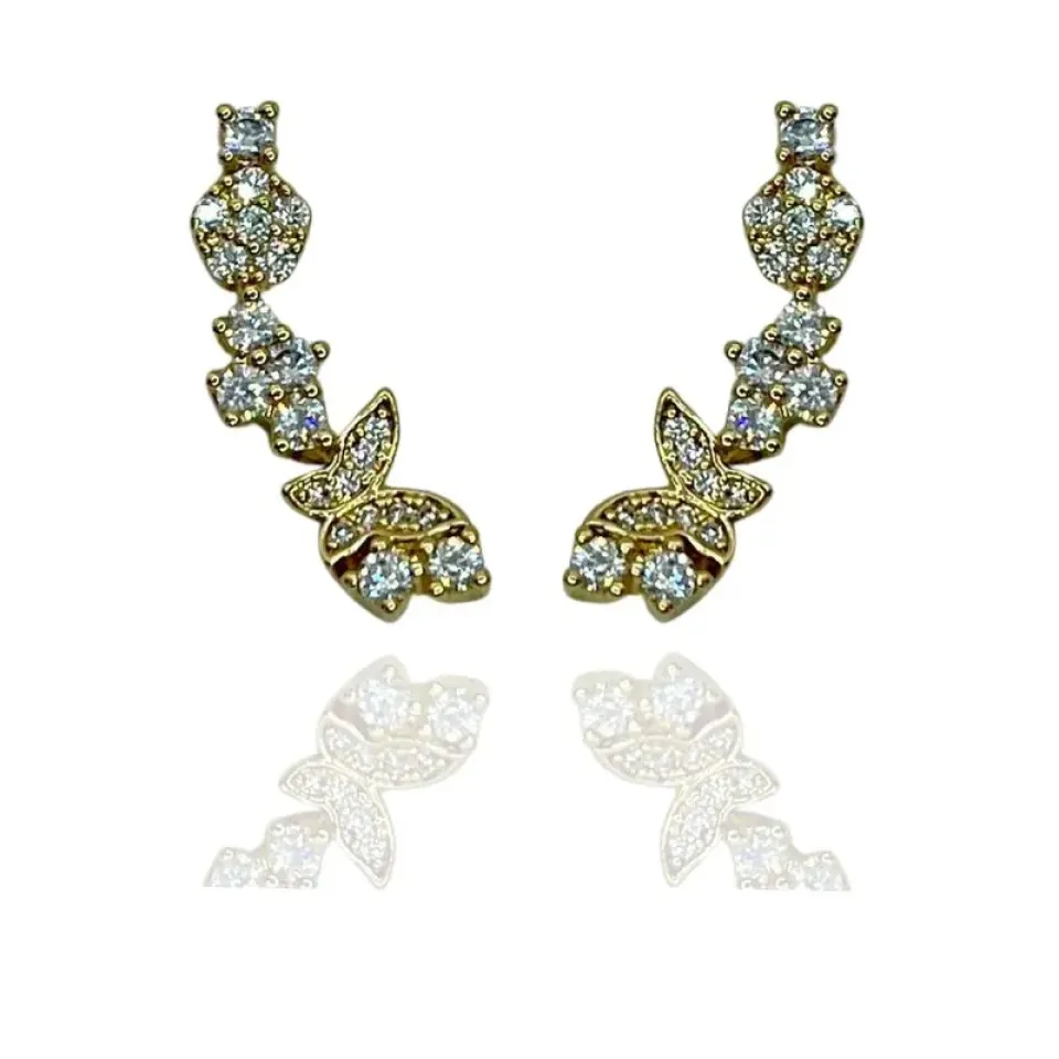 BRINCO EAR CUFF BORBOLETAS E FLORES CRISTAISConfira opiniões e avaliações de clientes!