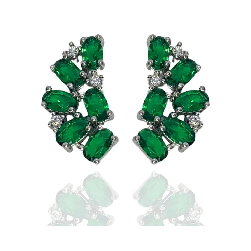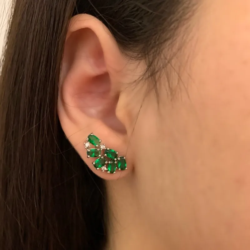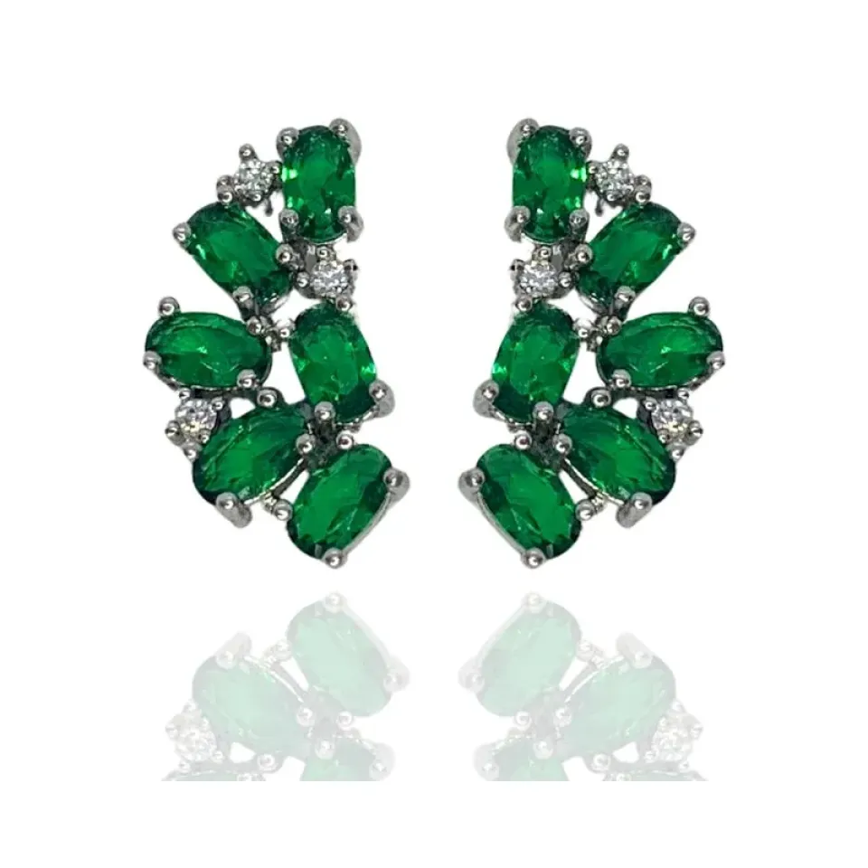 Brinco earcuff zircônias cristais e baguetes verde esmeralda