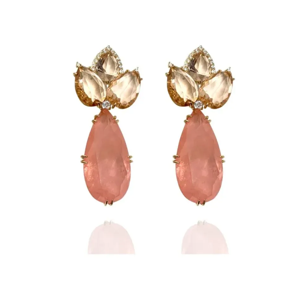 Brinco festa gotas pedras morganita