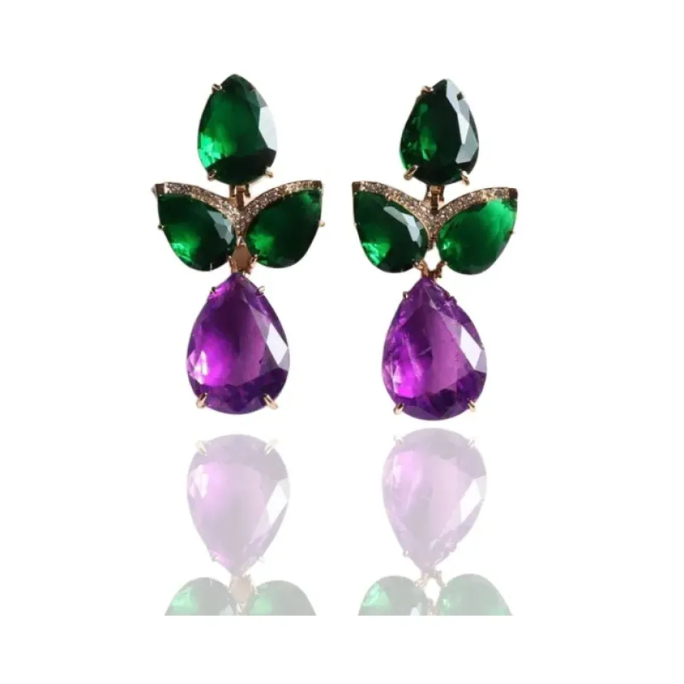 Brinco festa gotas verde esmeralda e lilás