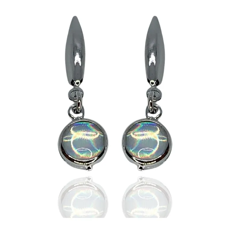 Brinco base lisa filete com pedra olho de tigre pendurada