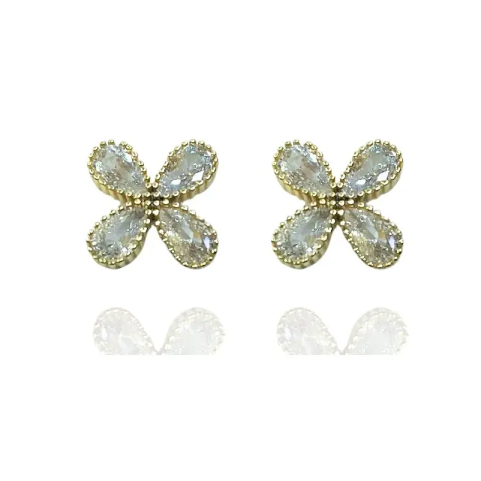 BRINCO FLOR 4 PÉTALAS ZIRCÔNIA CRISTAL