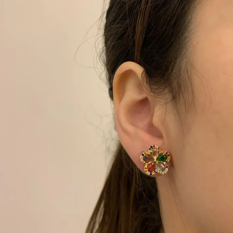 BRINCO FLOR COM ARO REMOVÍVEL ZIRCÔNIAS COLORIDAS