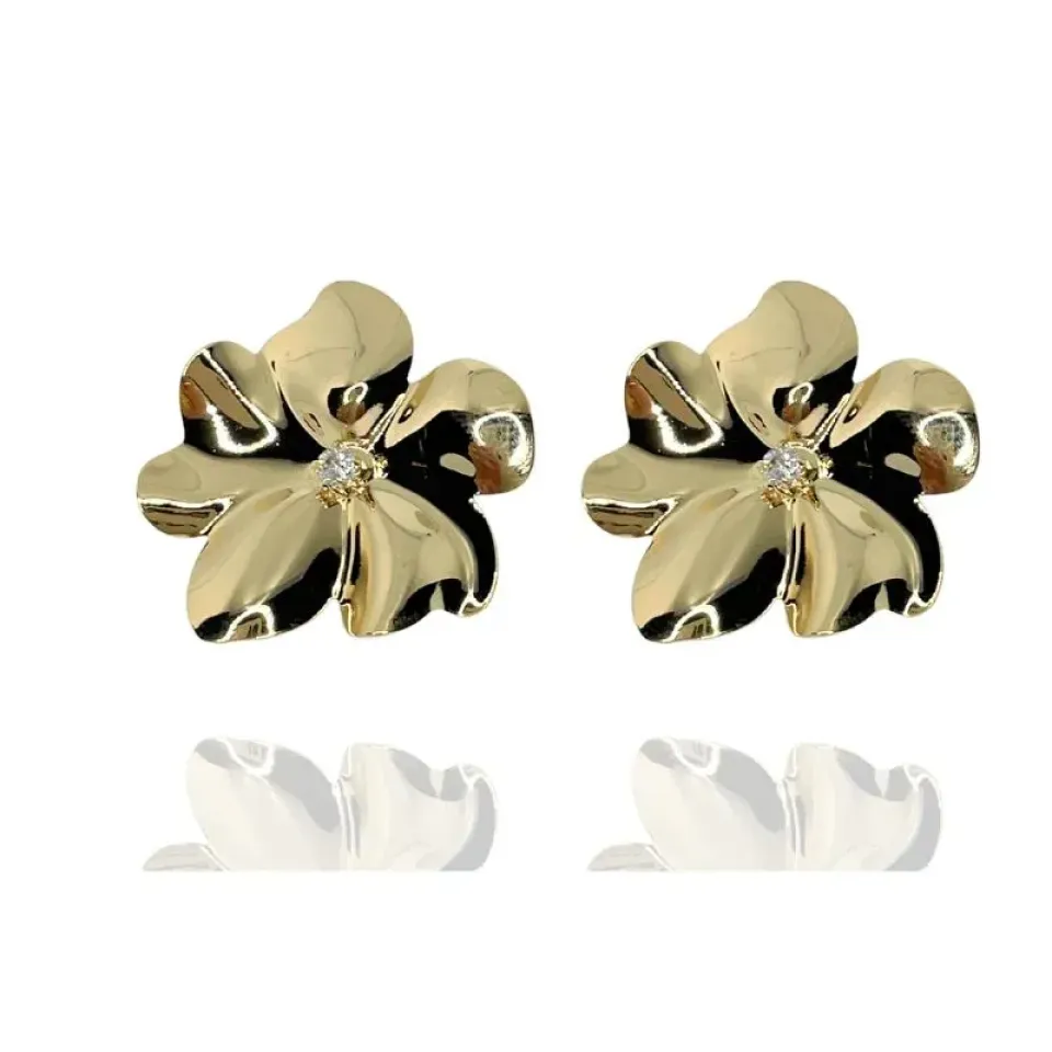 BRINCO FLOR LISO MIOLO COM 1 ZIRCÔNIA