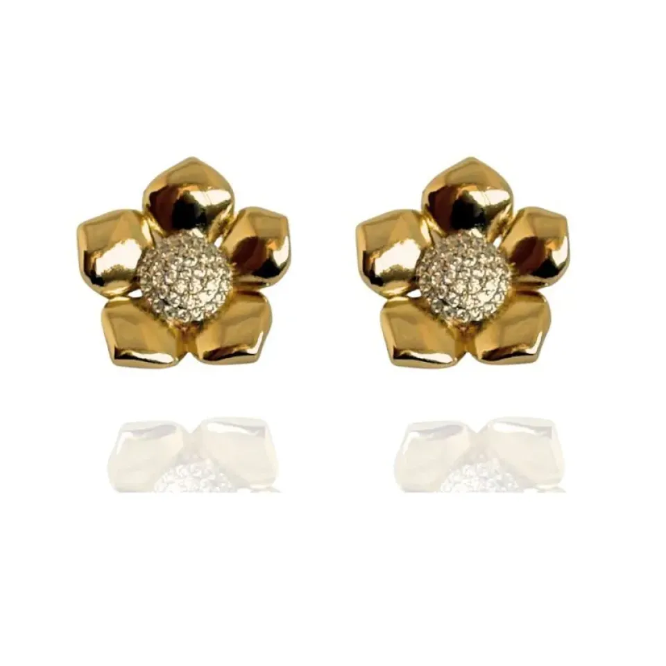 BRINCO FLOR MIOLO CRAVEJADO CRISTAL