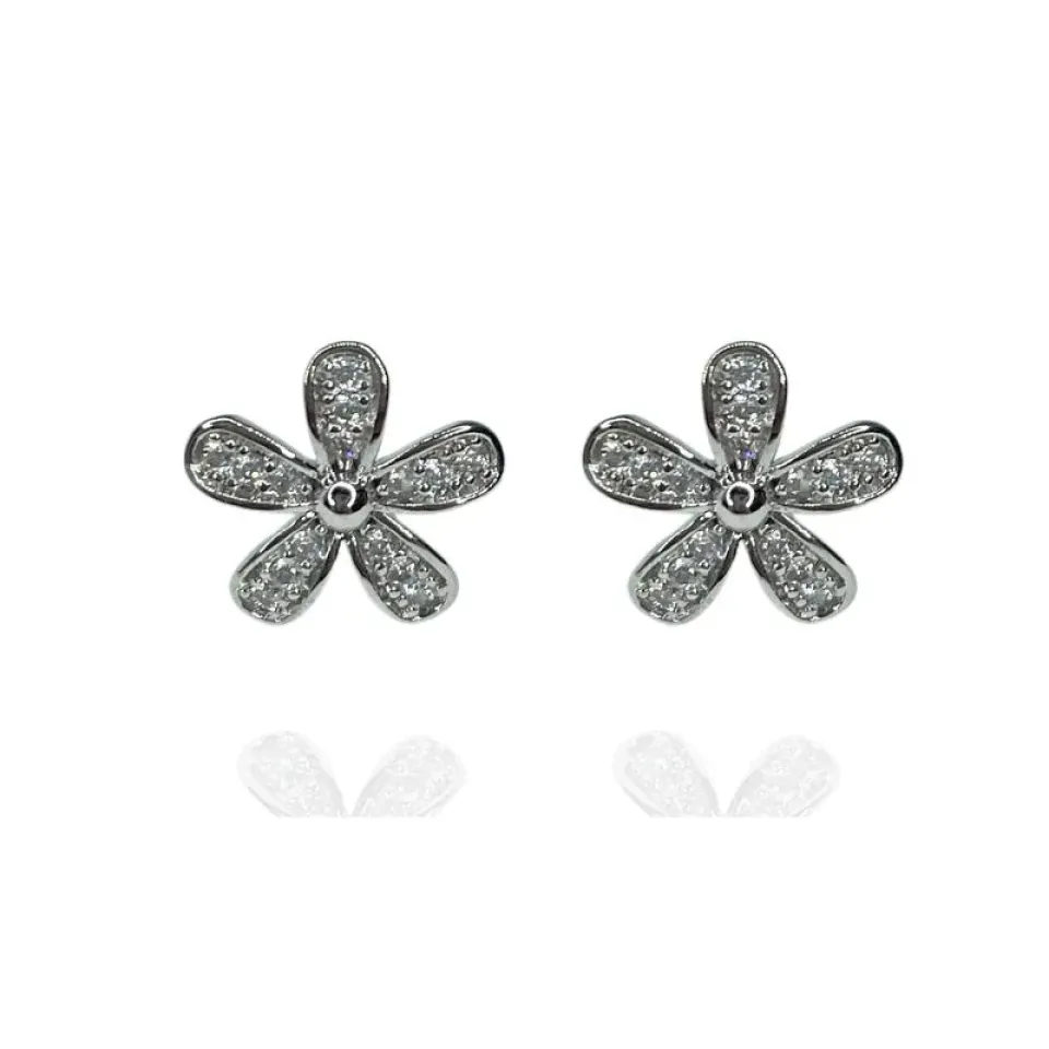 BRINCO FLOR PÉTALAS CRAVEJADAS CRISTAIS