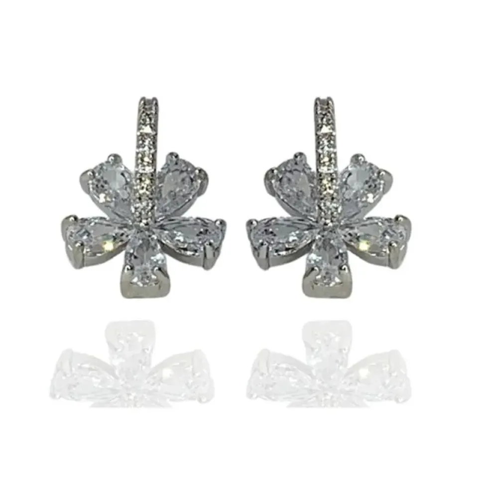 Brinco formato flor com pétalas de zircônias em gota