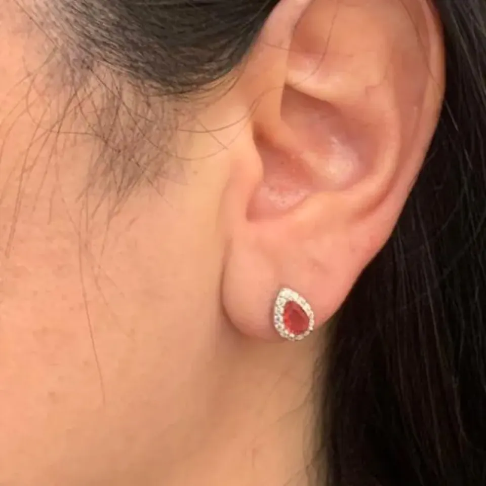 BRINCO GOTA RUBI CRAVEJADO EM VOLTA CRISTAL