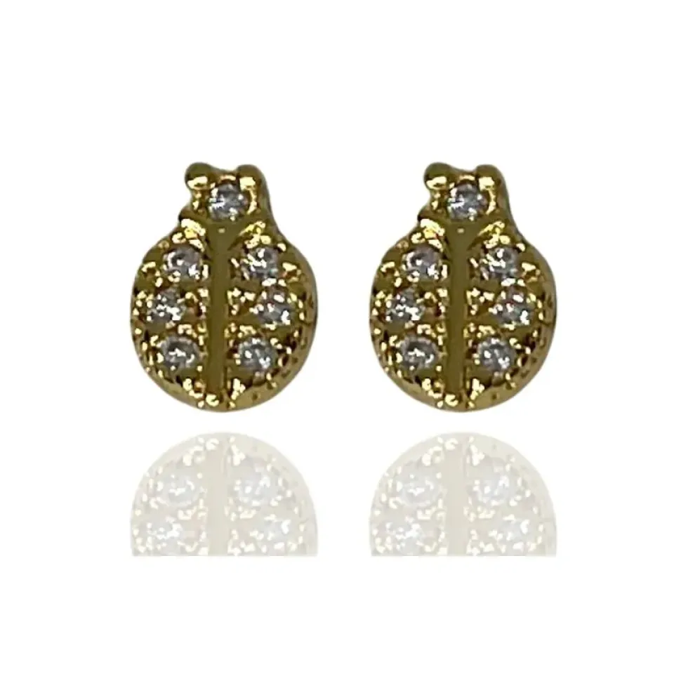 Brinco infantil joaninha cravejada com zircônias cristais