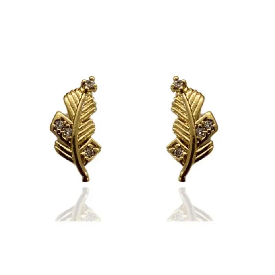BRINCO MINI FOLHAGEM COM PONTOS EM ZIRCÔNIAS