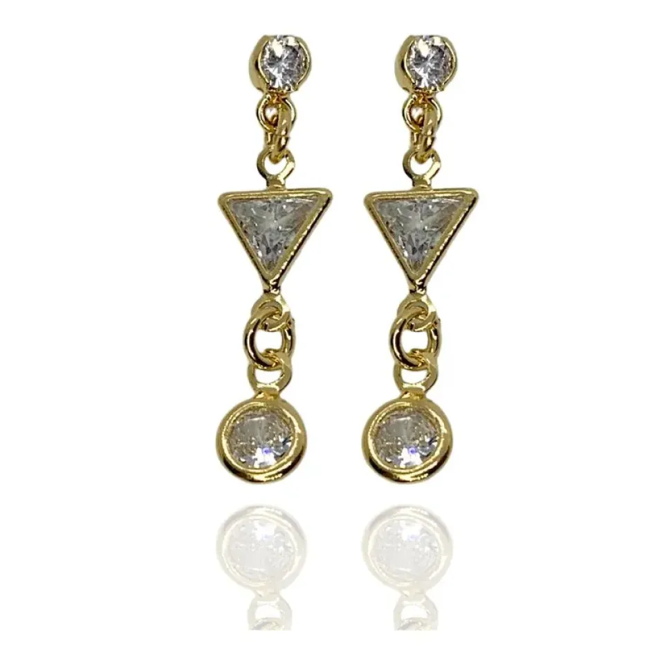 Brinco pendurado zircônias de triângulo e redondas