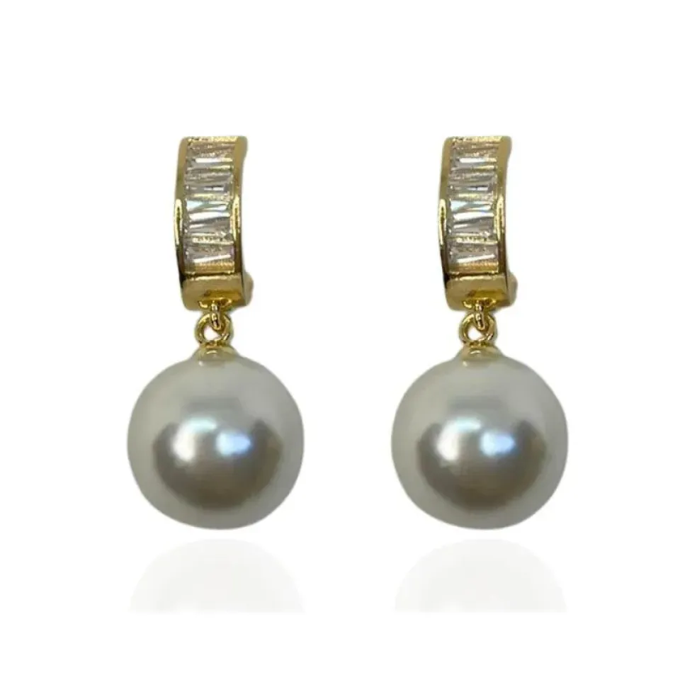 BRINCO PÉROLA COM BASE EM BAGUETES CRISTAIS