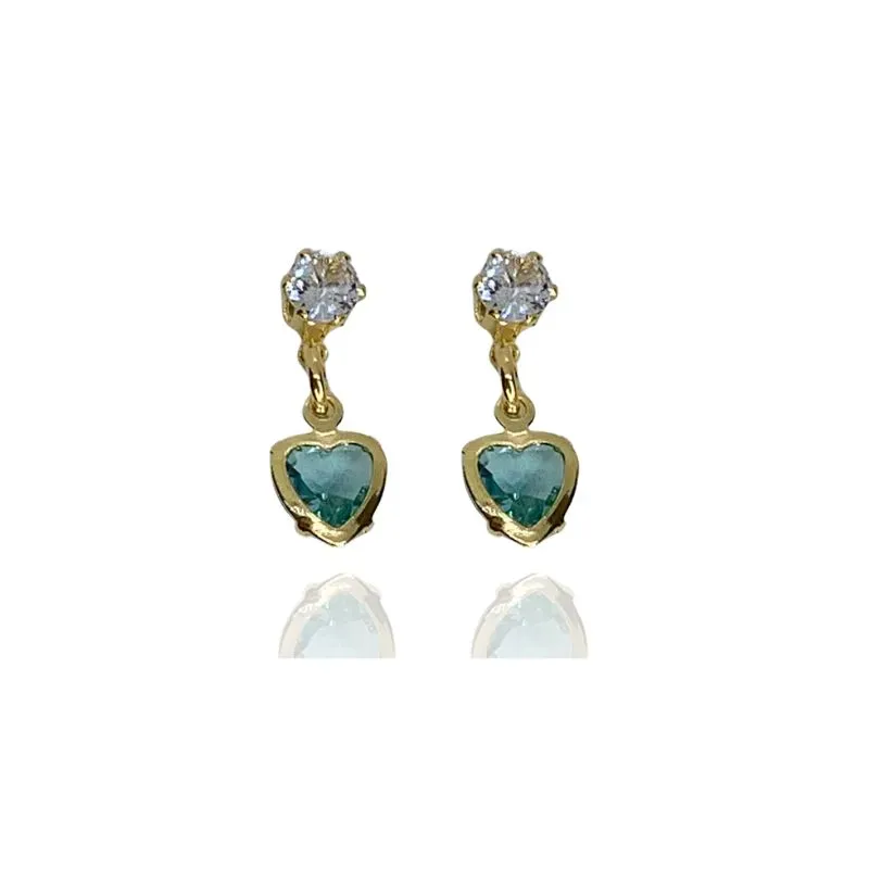 XBrinco ponto de luz com coração em zircônia azul aqua