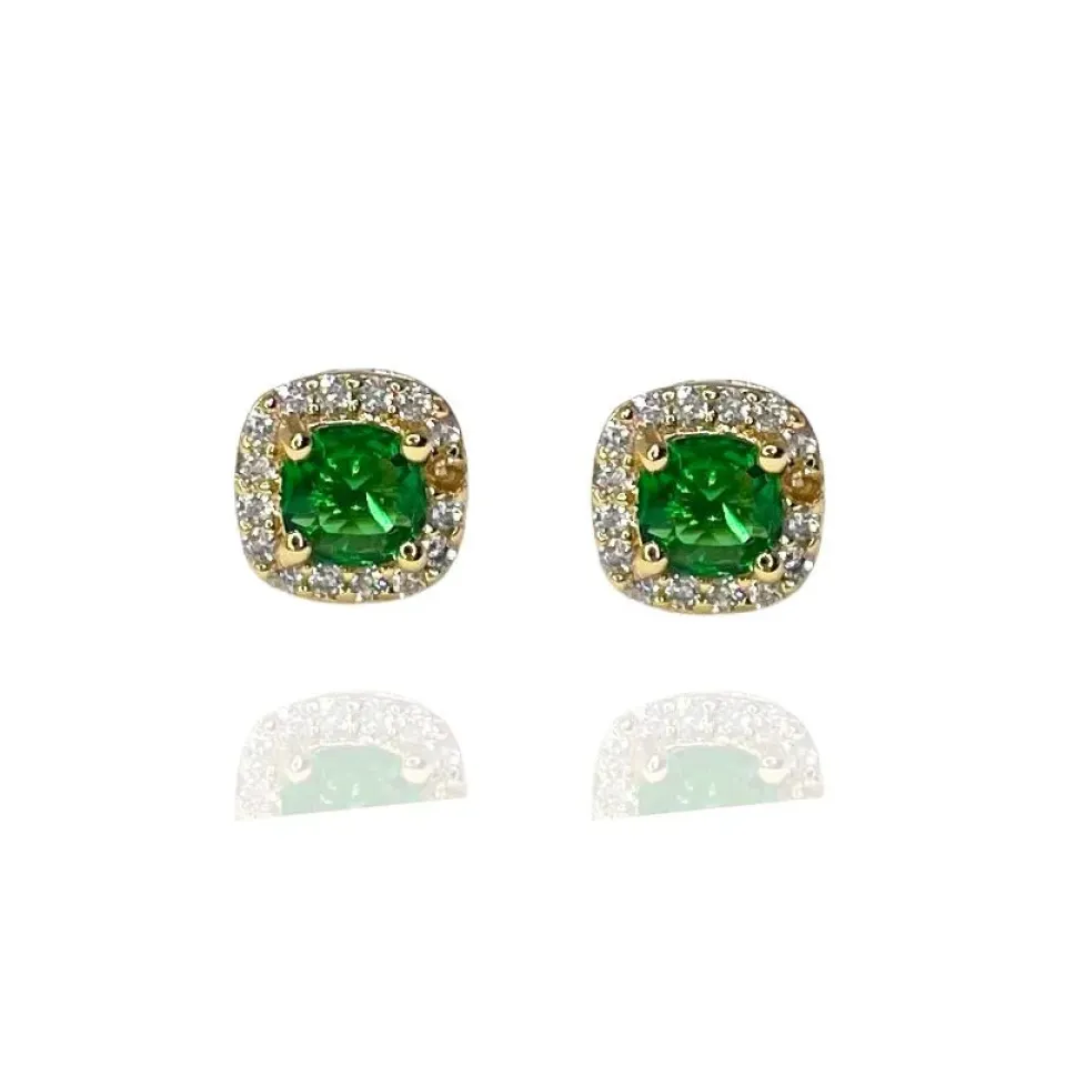 BRINCO PRINCESA QUADRADO ZIRCÔNIA VERDE ESMERALDA