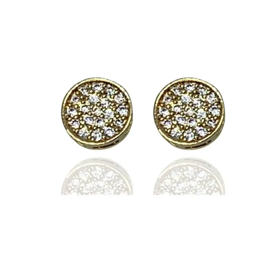 Brinco pequeno redondo com aro e cravejado dentro com zircônias cristais