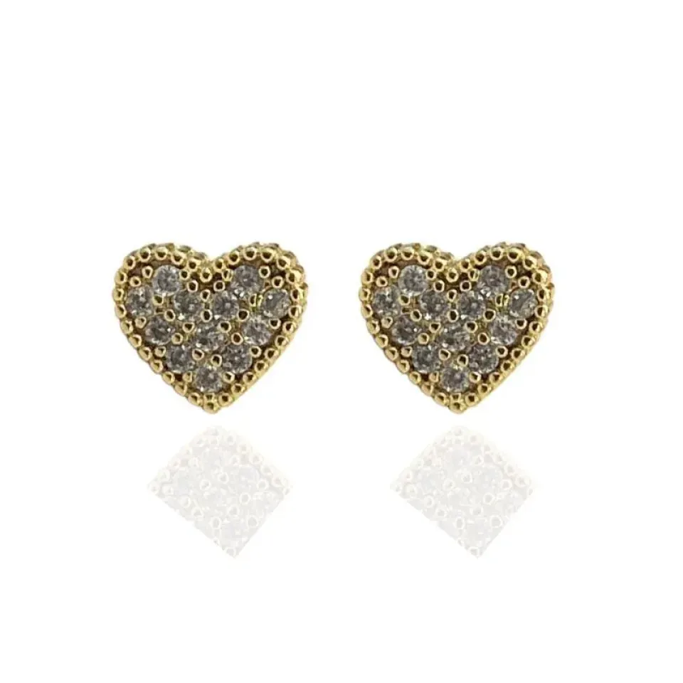 BRINCO SEGUNDO FURO CORAÇÃO CRAVEJADO CRISTAL