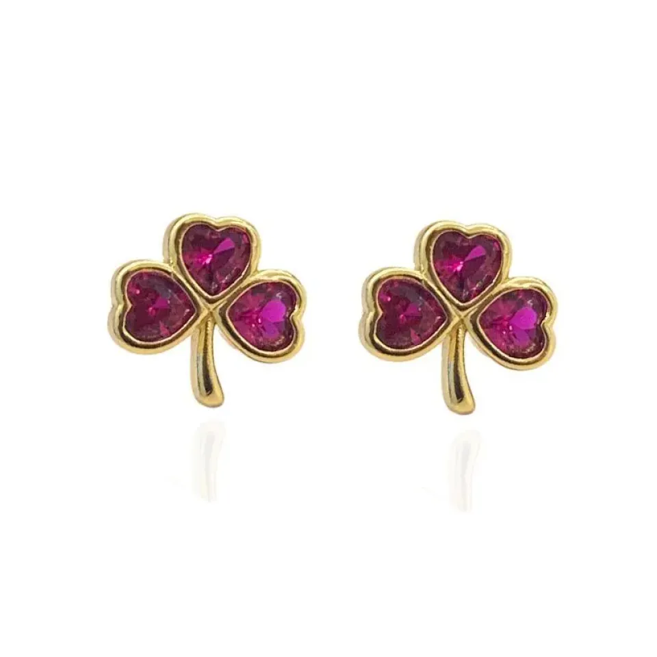 BRINCO TREVO CORAÇÕES EM ZIRCÔNIAS ROSAS