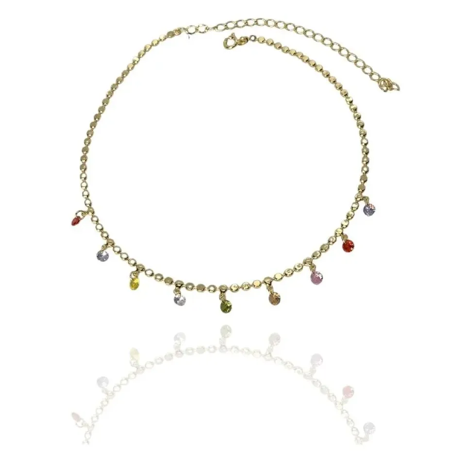 Choker corrente bolinhas laminadas com cristais coloridos laminados