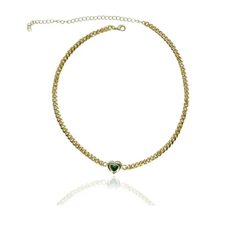 CHOKER CORRENTE ELOS PEDRA CORAÇÃO COM AROConfira opiniões e avaliações de clientes!