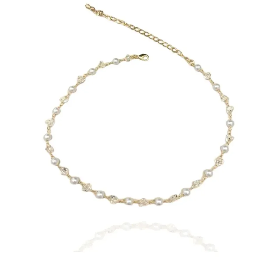 Choker pérolas e cristais