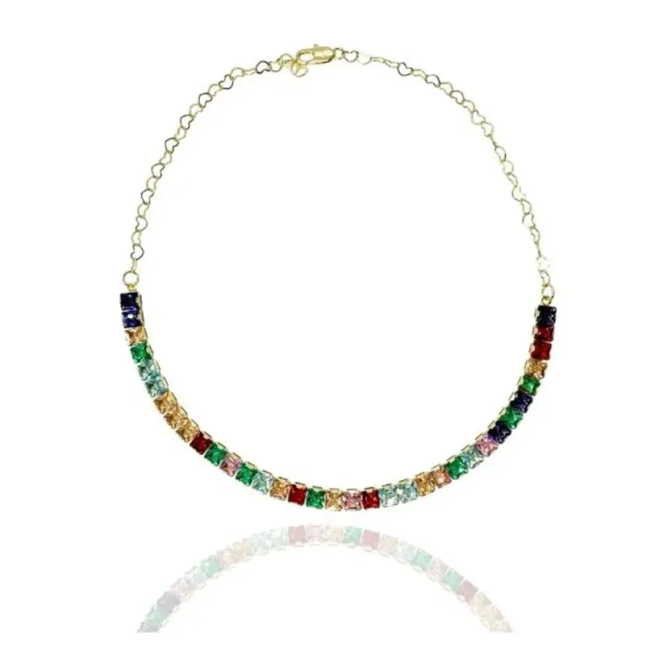 Choker zircônias quadradas coloridas