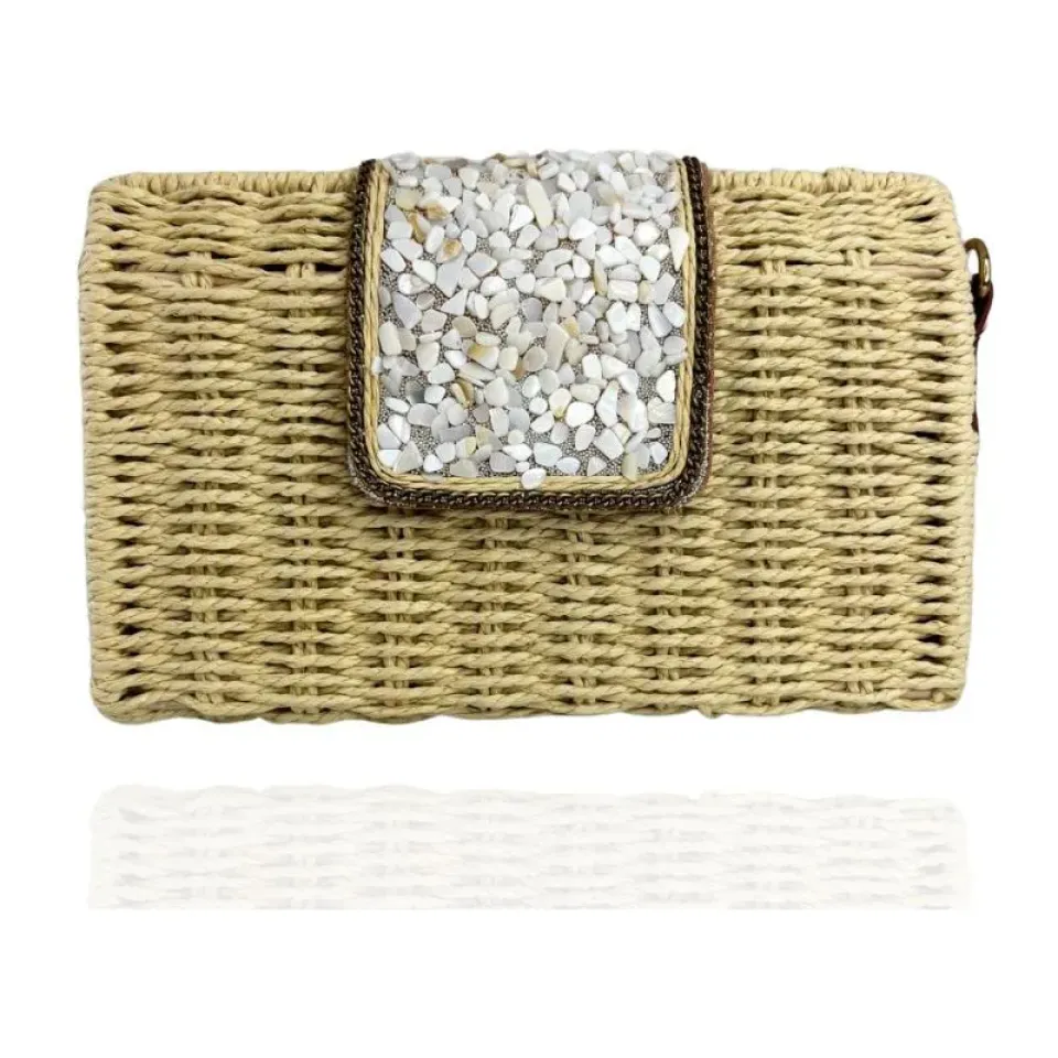 CLUTCH PALHA COM PEDRAS BRANCAS
