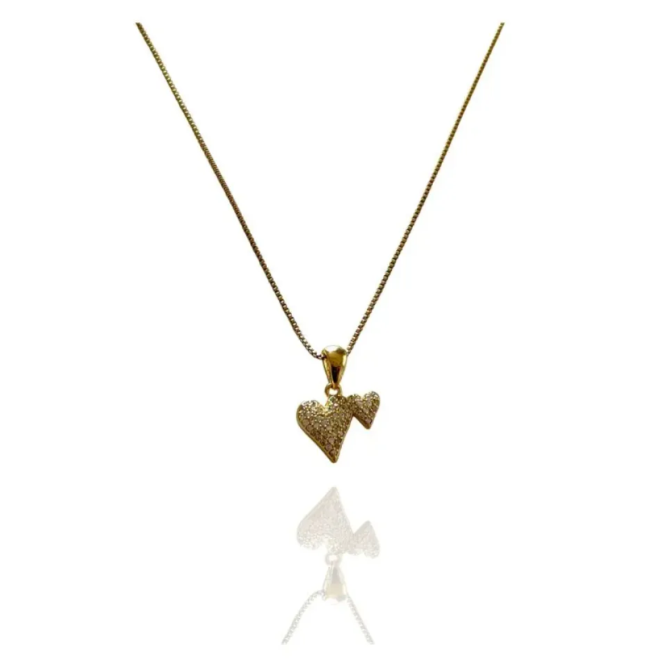 Colar pingente dois corações cravejados