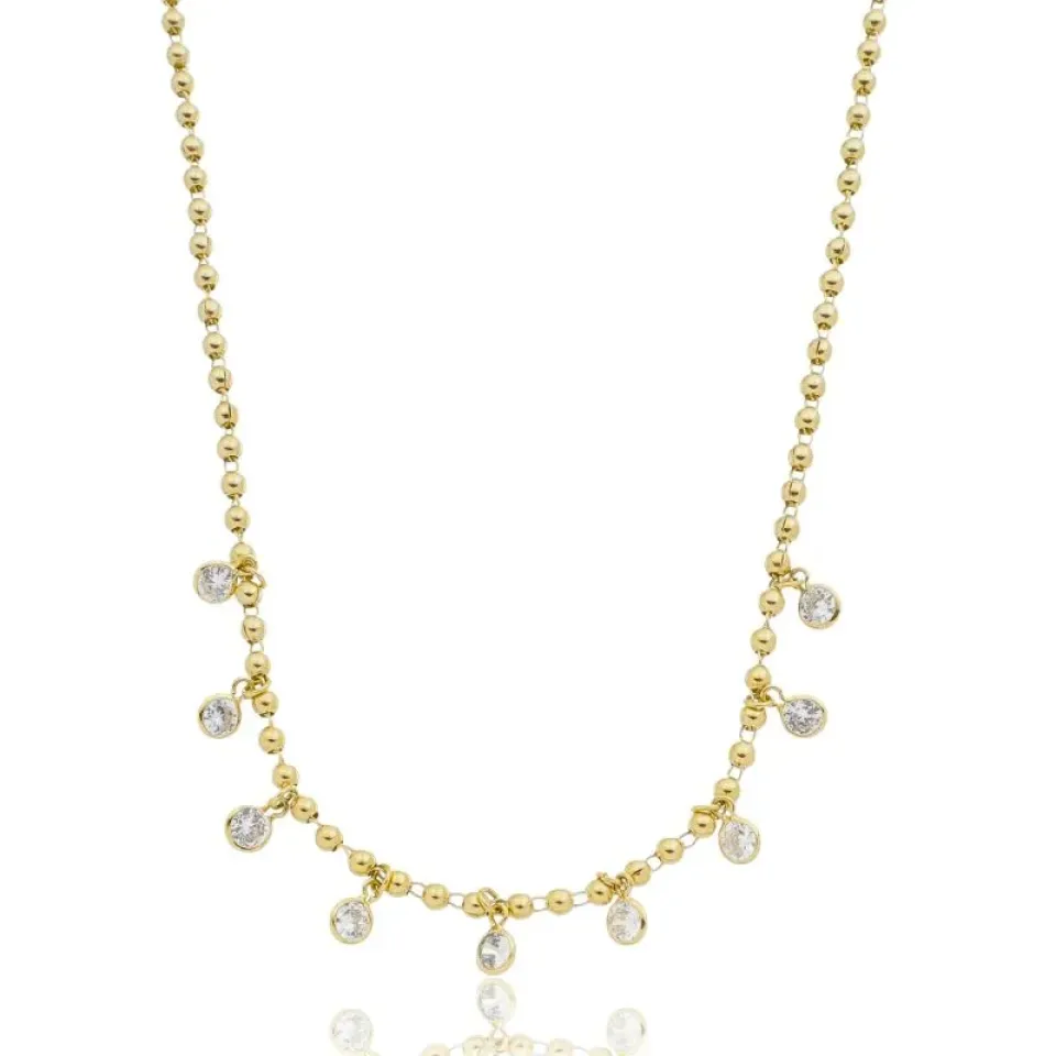 Colar bolinhas com zircônias cristais penduradas