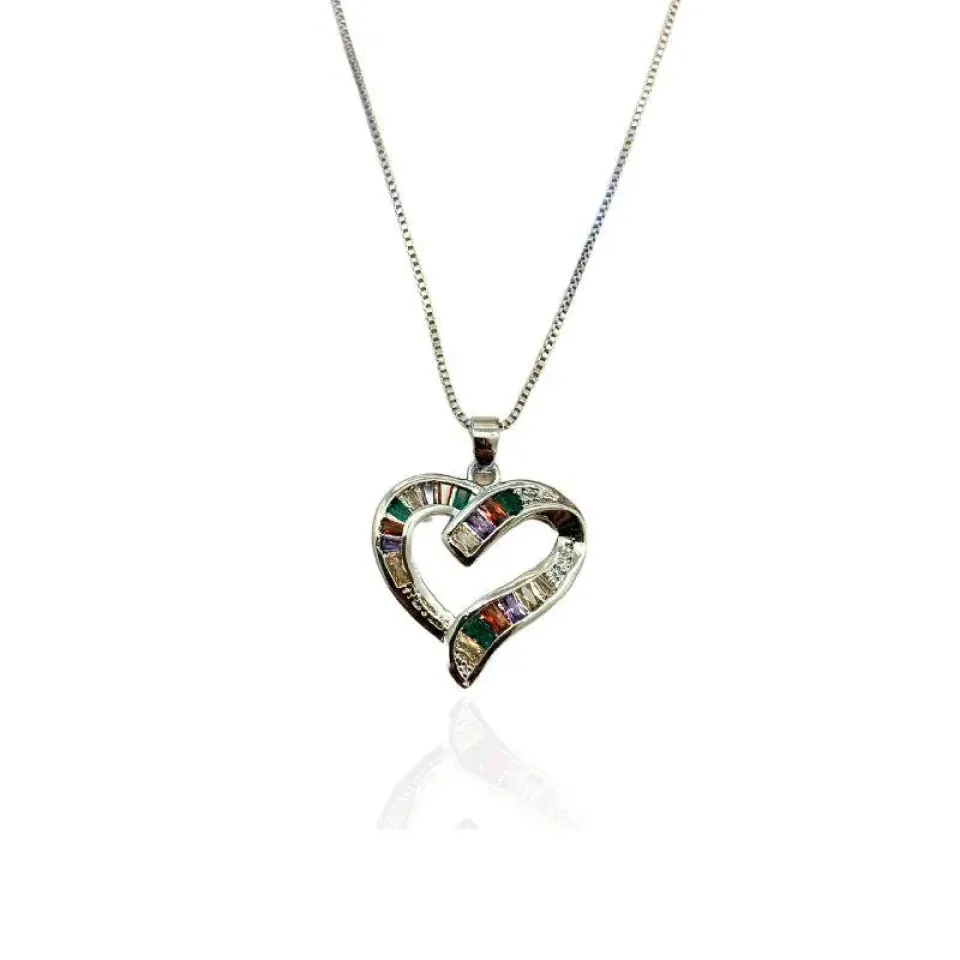 COLAR CORAÇÃO EM BAGUETES COLORIDOS