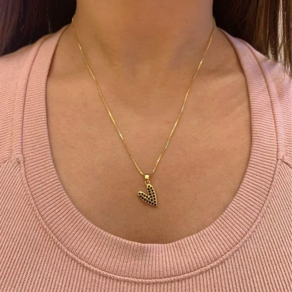 COLAR CORAÇÃO ESTICADINHO CRAVEJADO ZIRCÔNIAS NEGRAS