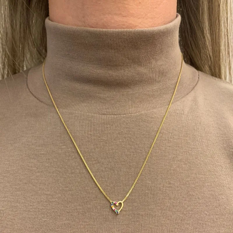 COLAR CORAÇÃO MINI VAZADO E METADE CRAVEJADO COLORIDO