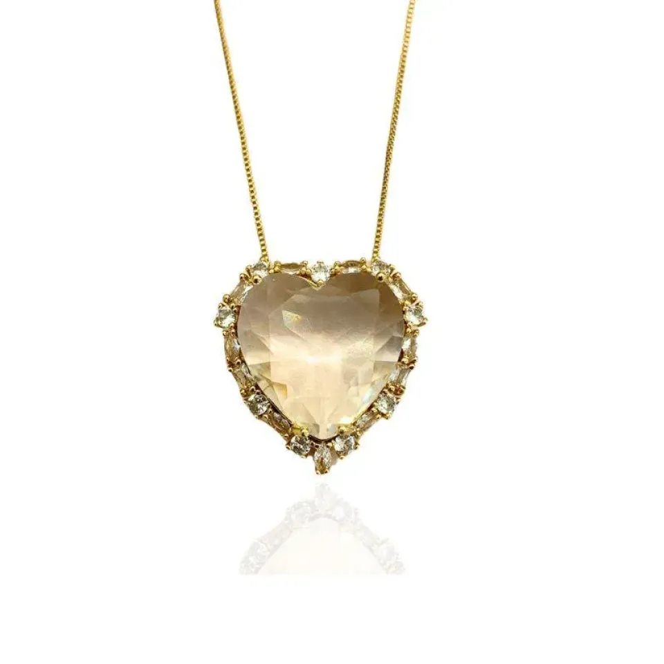 COLAR CORAÇÃO PEDRA GRANDE CRISTAL