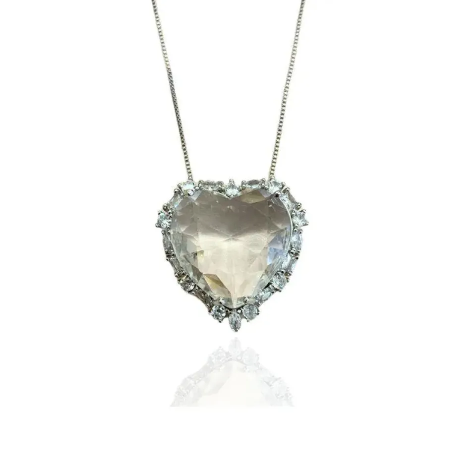 COLAR CORAÇÃO PEDRA GRANDE CRISTAL