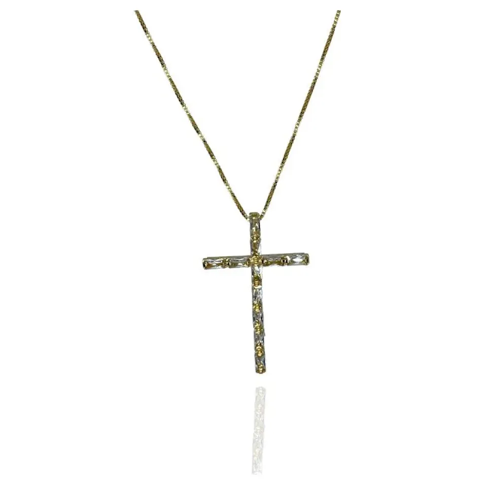 Colar crucifixo de baguetes cristais