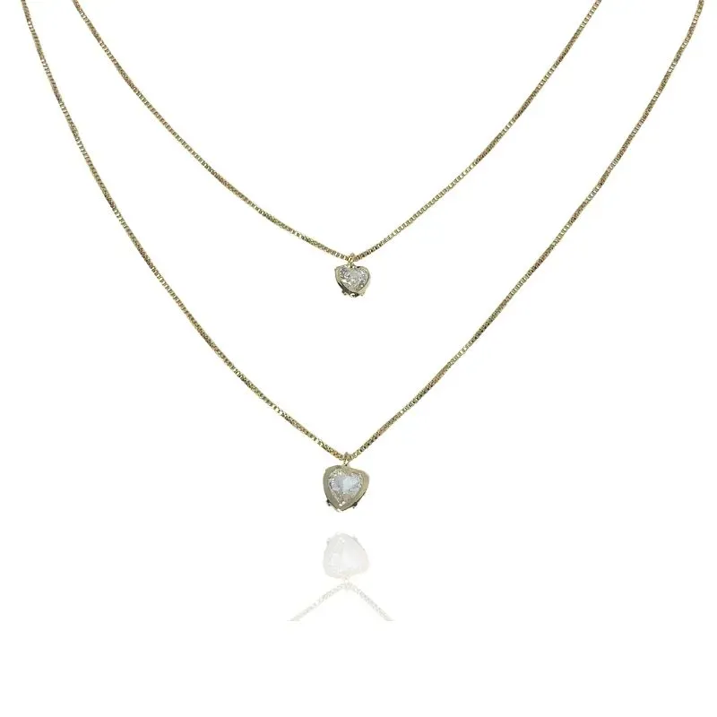 COLAR DUPLO 2 CORAÇÕES DE ZIRCÔNIASConfira opiniões e avaliações de clientes!