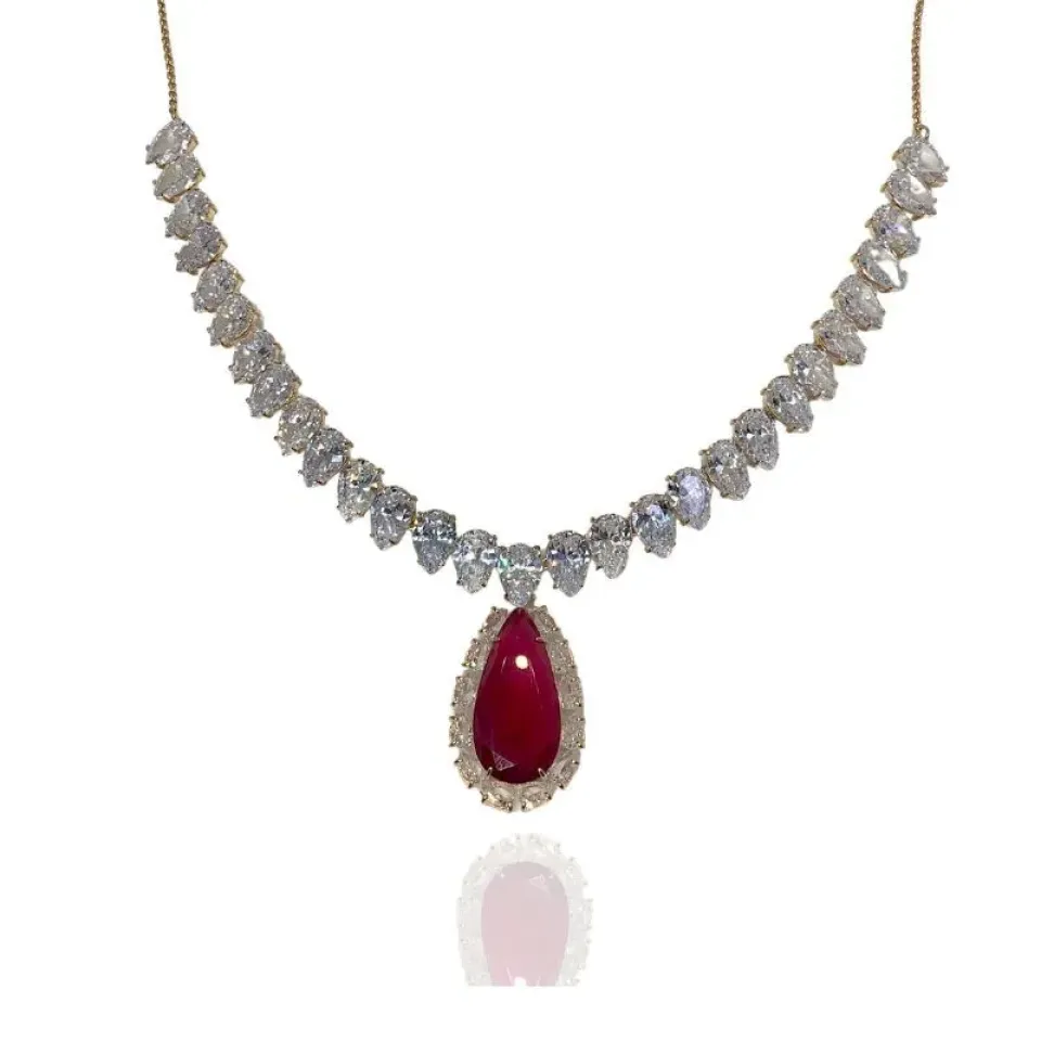 Colar festa gotas cristais e gota grande vermelha pendurada