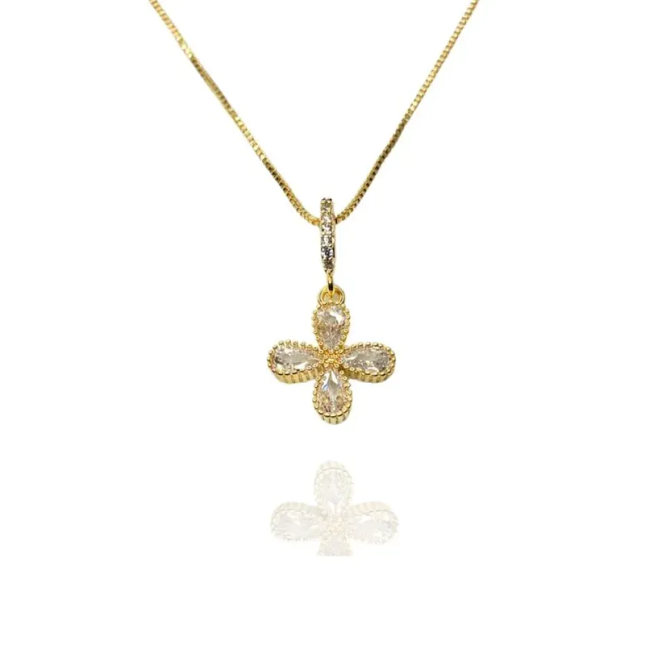 COLAR FLOR 4 PÉTALAS EM ZIRCÔNIAS CRISTAL