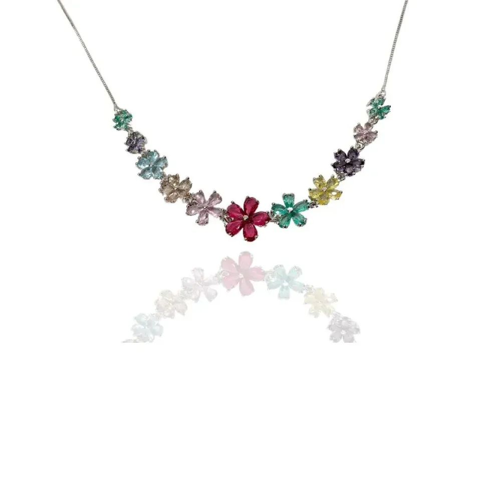 Colar flores com pétalas de zircônias, cada flor de uma cor