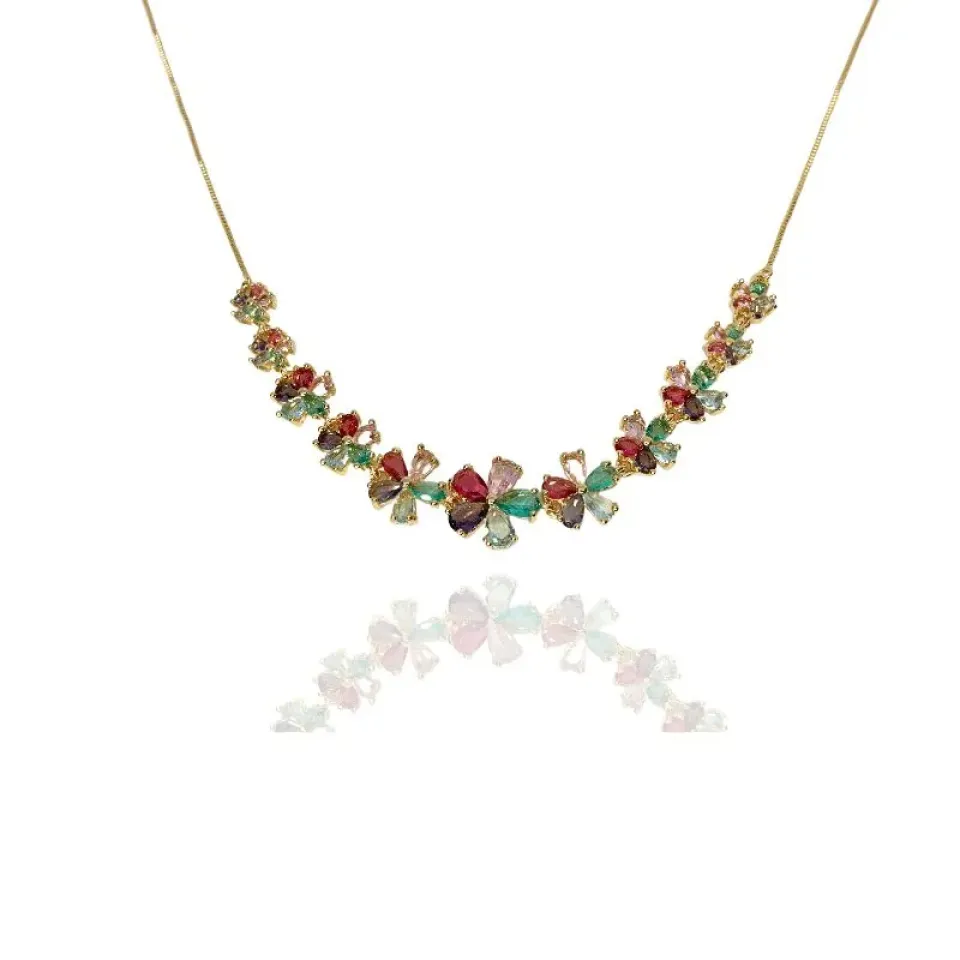 Colar flores com pétalas de zircônias, cada pétala de uma cor