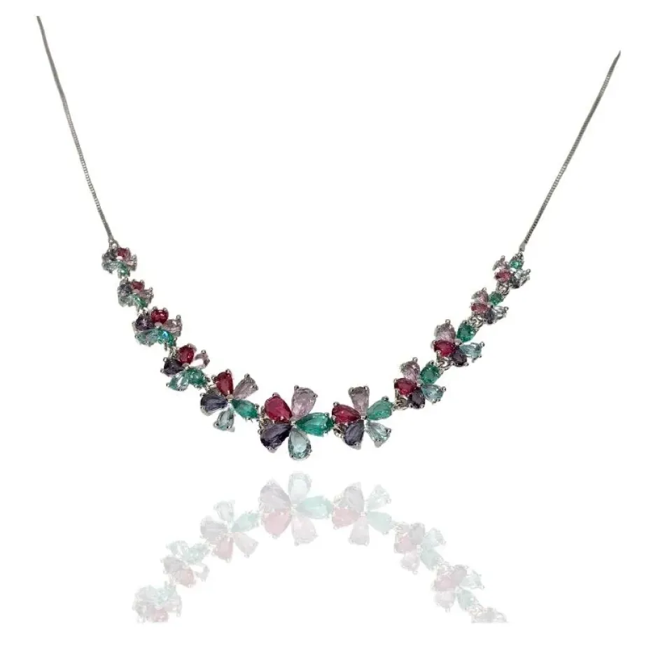 Colar flores com pétalas de zircônias, cada pétala de uma cor