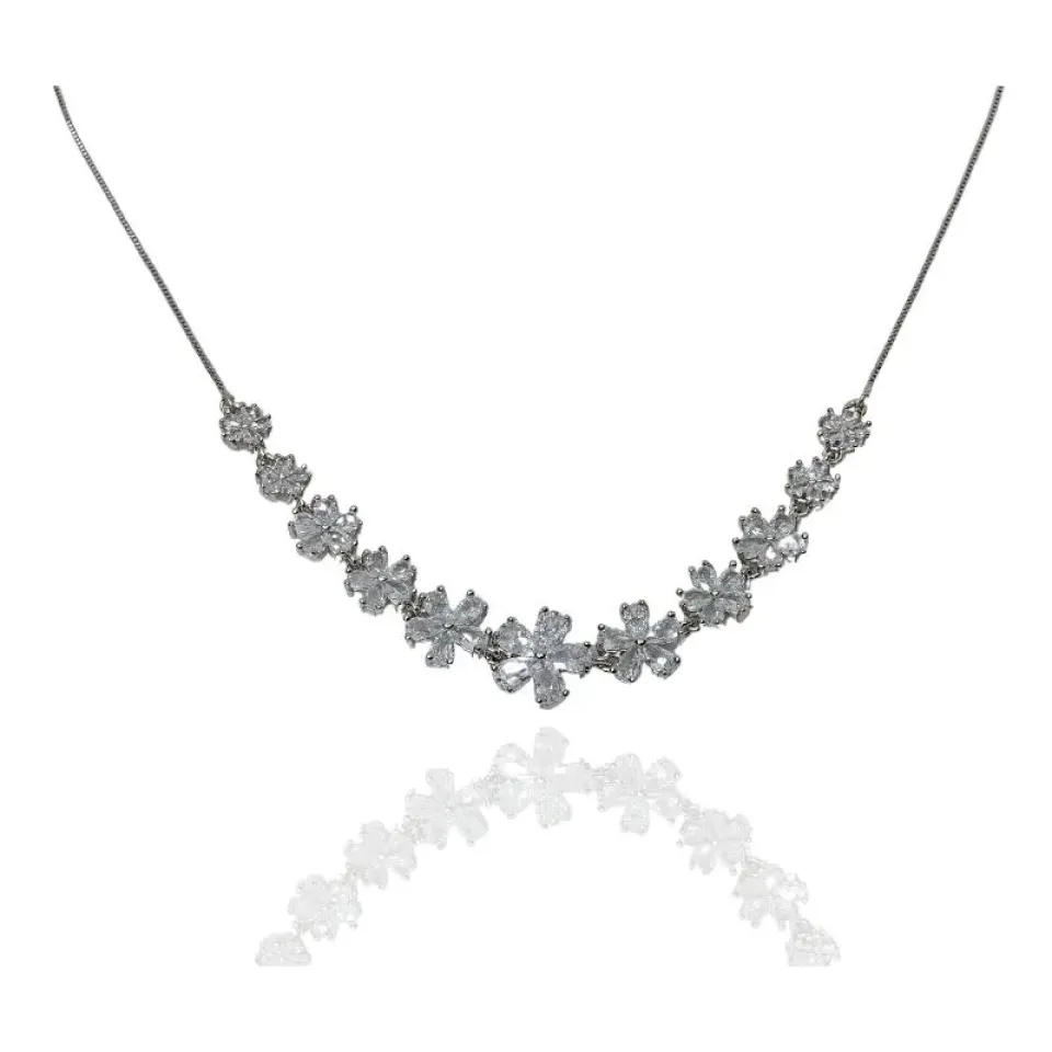 Colar flores com pétalas de zircônias cristais