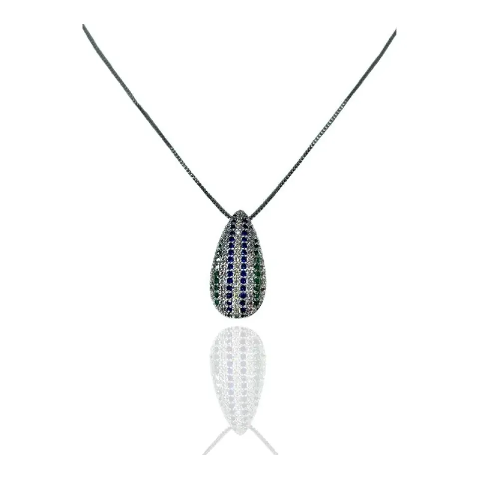 Colar corrente veneziana e pingente gota cravejada com zircônias coloridas